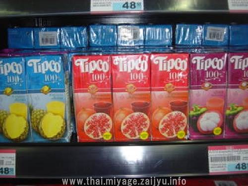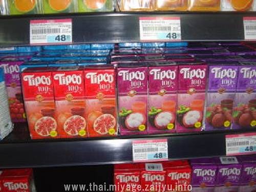 またタイのスーパーマーケットには、果汁100%のジュースが沢山置かれています。